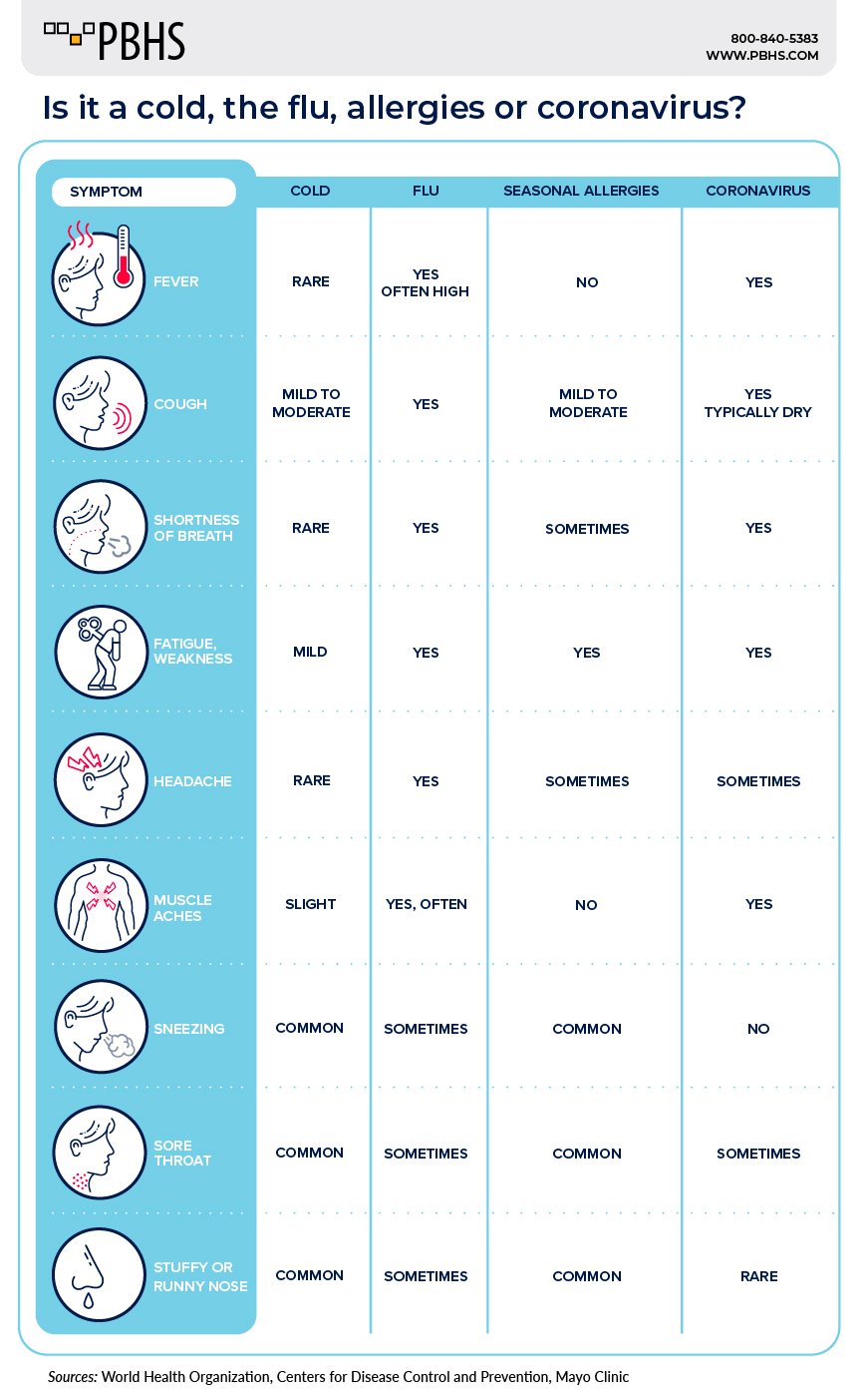 Please view and share our latest COVID-19 Symptom Comparison Chart with your friends and family.